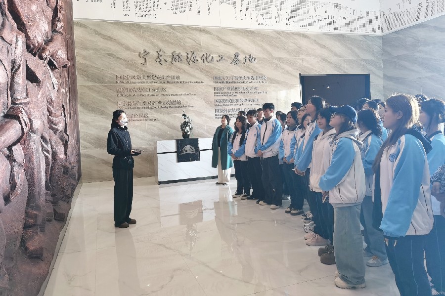在宁东科创中心展厅,学生们沿着“宁东能源化工基地转型发展之路”展板,系统了解从传统煤炭产业到绿色能源、高端化工产业的升级历程,近距离感受科技创新的魅力。思政教师组织学生围绕“‘黑色能源’如何变身‘绿色材料’”“青年科研人员的坚守与担当”等话题展开讨论,引导学生将专业学习与国家战略需求、生态文明建设相结合,在思维碰撞中深化对“科技是第一生产力”“人才是第一资源”的理解。