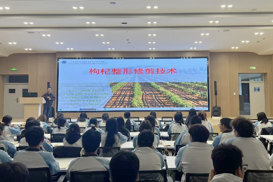 为深化学生对区域特色产业的理解,提升实践操作技能,近日,园艺工程系特邀宁夏林业研究院副研究员、产业导师南雄雄,为同学们带来了一场内容丰富、生动精彩的枸杞冬季整形修剪技术理实一体化培训。