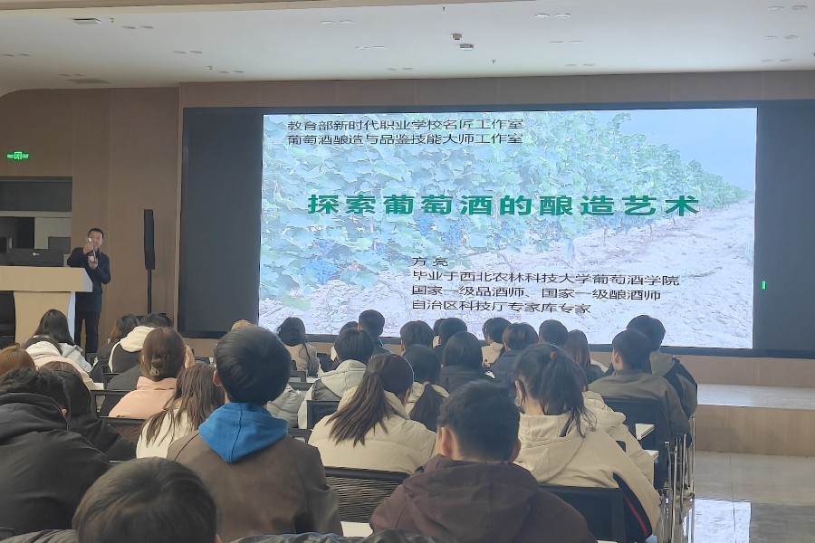 为弘扬工匠精神、深化专业内涵、拓宽学生视野,宁夏葡萄酒现代产业学院特邀国家一级酿酒师、国家一级品酒师、科技厅专家库成员方亮先生,于11月6日和13日在学院全产业链大厅成功举办了两场葡萄酒文化系列讲座。本次活动由教育部新时代职业学校名匠工作室与葡萄酒酿造与品鉴技能大师工作室联合承办,吸引了超过220名学生积极参与,现场气氛热烈。