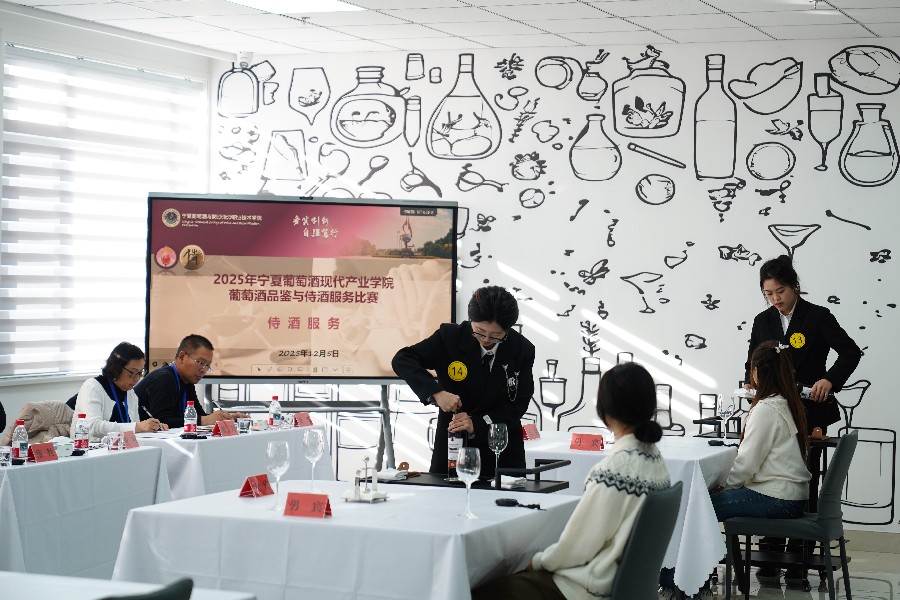 12月4日至5日,由宁夏葡萄酒现代产业学院主办的校级葡萄酒品鉴与侍酒服务技能竞赛,在学院实训大楼酒水服务实训室圆满落幕。本次竞赛旨在对接产业需求,深化产教融合,检验与提升学生专业实践能力,吸引了各系近百名学生积极参与。