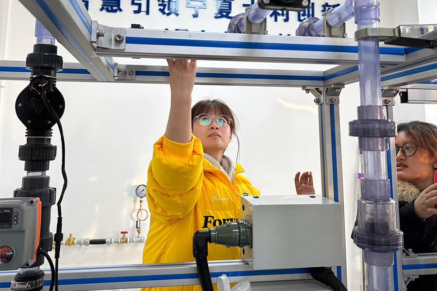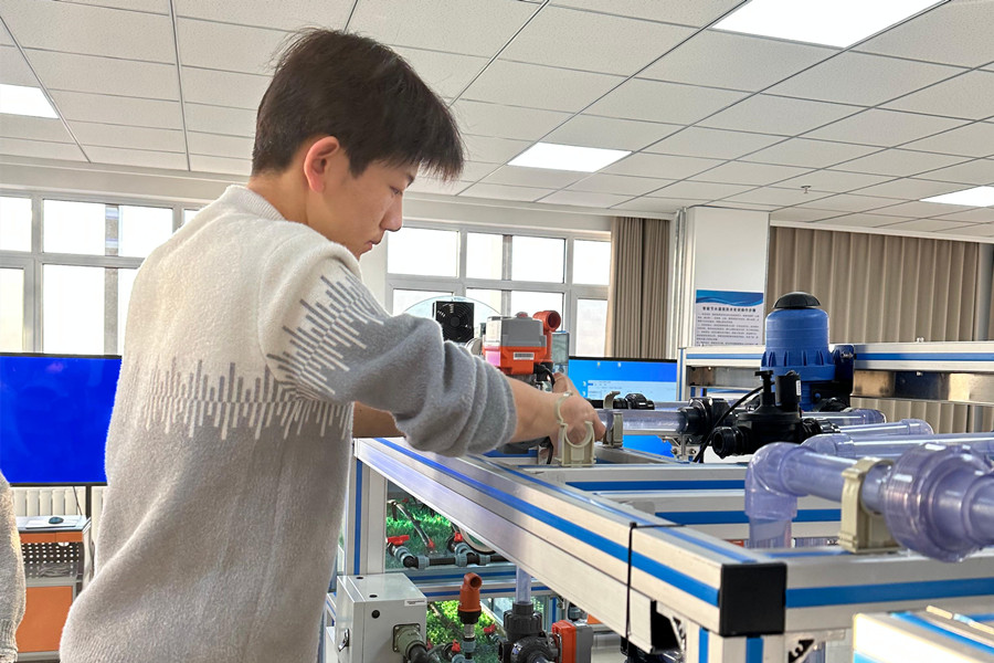 “过去在课堂上学习的节水灌溉理论知识比较抽象,通过这次实训,我亲手拆装了泵站供水设备,还学会了用云组态平台调控灌溉系统,真切感受到了智能技术如何让灌溉更精准、更节水。”水利水电工程技术专业学生说道。
