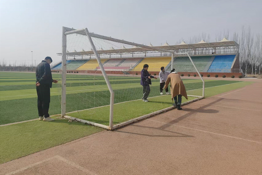 体育教研室教师先后前往篮球场、田径场、足球场、学生健身活动区域及体育器材管理室,对各类设施进行全面、细致排查。在室外运动场地,重点查看篮球架、足球门框的稳固性,细致检查跑道平整度、草坪完好度,认真排查各类健身器械是否存在锈蚀、松动、部件缺失等安全隐患。体育教研室负责人表示,室外运动区域师生活动密集、使用频率高,是安全管理的重中之重,必须做到隐患早发现、早报告、早处置,确保设施始终处于安全运行状态。
