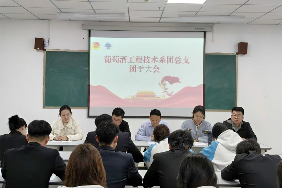 3月31日,葡萄酒工程技术系团总支在学院葡萄酒实验实训教学大楼召开2026年春季学期第一次团学大会,深入落实党建带团建工作要求。系党支部书记魏波、辅导员及团学组织全体学生干部参会。
