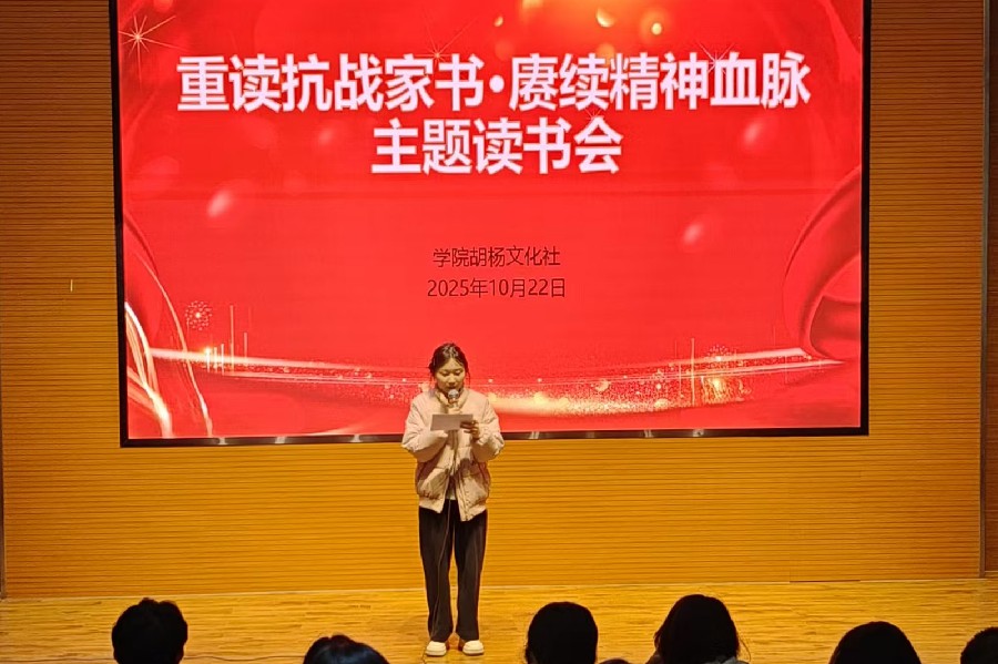 为引导青年学生铭记革命先烈事迹、传承红色基因,10月22日晚,胡杨文学社在1号阶梯教室举办“重读抗战家书·赓续精神血脉”主题读书会,吸引60余名学生积极参与。