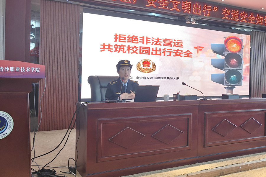 为进一步增强师生交通安全意识,有效预防和减少道路交通事故的发生,共同营造安全、文明、和谐的校园交通环境。11月11日,学院安全保卫处特邀永宁县公安局交通管理大队、交通运输综合执法大队工作人员走进校园,为师生们带来了一场生动且富有教育意义的交通安全知识讲座。