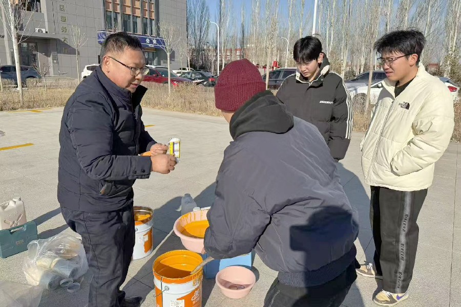 此次“专业技能标线绘制”劳动教育课程,核心在于探索专业教学与劳动育人深度融合的实践路径。学生全员参与,在辅导员与专业教师的共同指导下,将《园林工程施工》等课程所学的测量、放样、涂刷等专业技能,精准应用于实际场地改造。从前期实地勘测、方案规划,到场地清扫、精准弹线,再到涂料涂刷、标识喷涂,同学们分组协作、各司其职,对每一道工序都秉持严谨细致的态度。