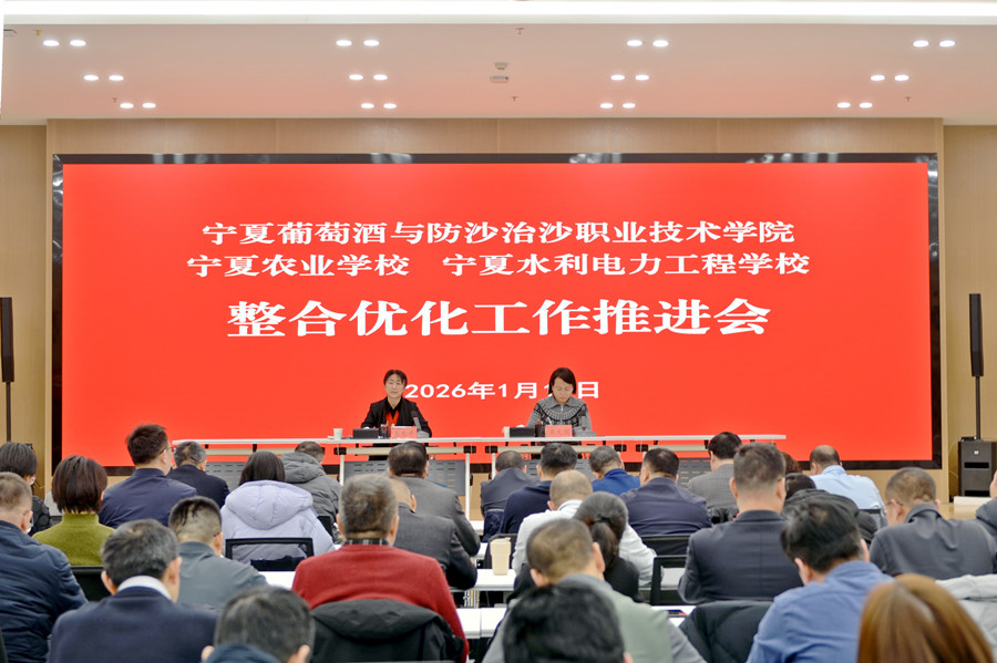 1月13日,宁夏葡萄酒与防沙治沙职业技术学院、宁夏农业学校、宁夏水利电力工程学校整合优化工作推进会在宁夏葡萄酒与防沙治沙职业技术学院召开,三所学校领导班子成员及中层干部参加会议。