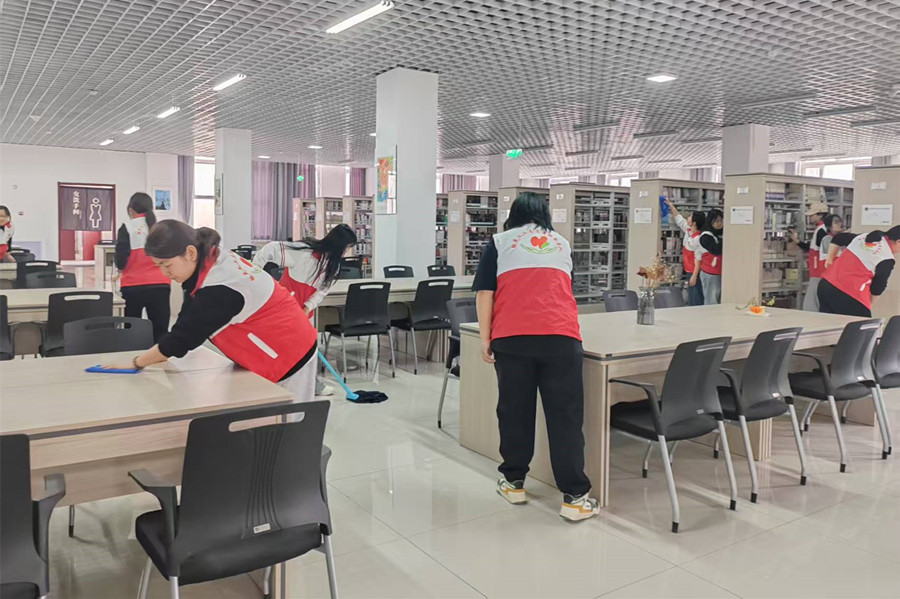 与绿植领养活动同步开展的“我为图书馆净书香”清洁行动,同样暖意涌动。图书馆工作人员与志愿者们分工协作、默契配合,化身“书香守护者”,穿梭在借阅大厅、书架之间、阅览区域、走廊角落,细致擦拭书架、整理书籍、清扫地面,不放过任何一个卫生死角。大家以饱满的热情、务实的作风,用行动守护书香环境,为广大读者营造出整洁、卫生、舒适、雅致的阅读环境。