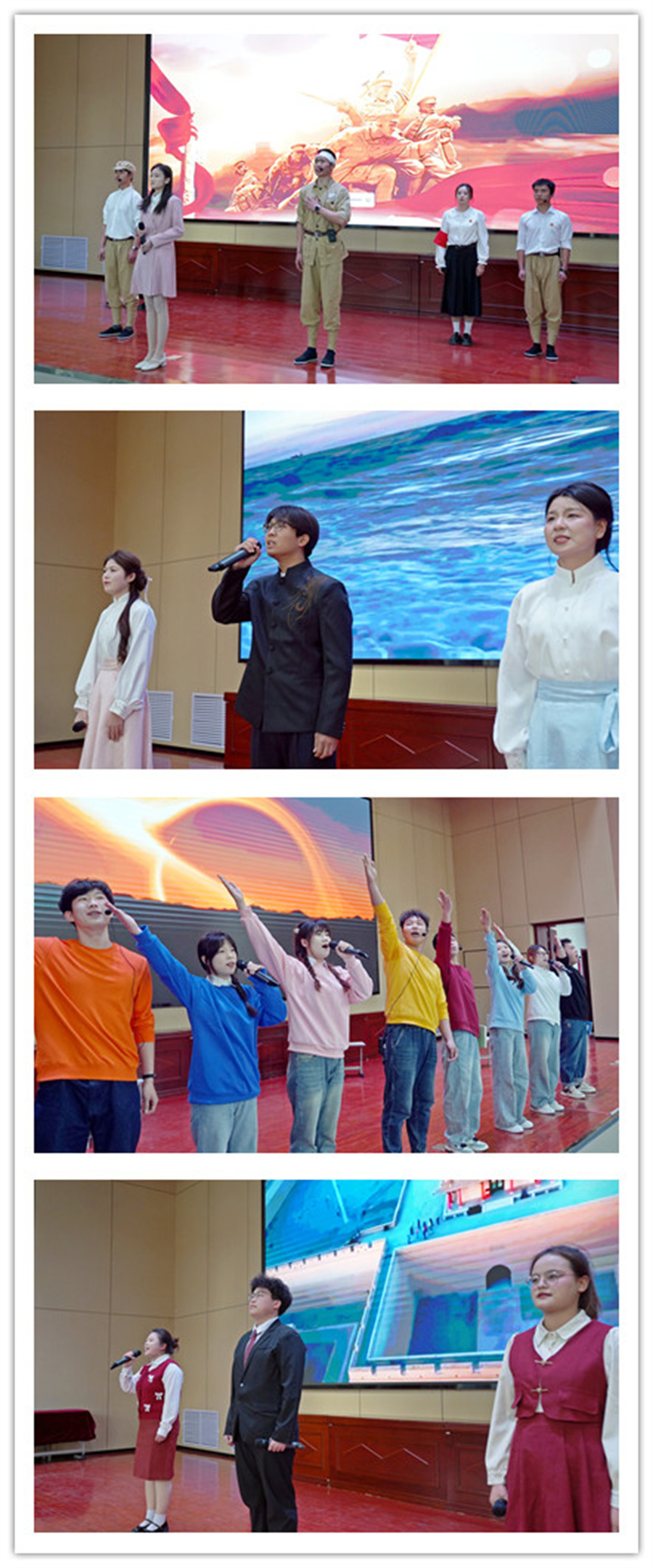 演绎会以一条奔腾不息的“精神之河”为主线,通过“古河之熔·奠基”“星河之淬·涅槃”“新河之锻·创造”“长河之成·永恒”四幕演绎,层层递进地展现了中华民族精神在历史烈火中千锤百炼的壮阔历程。从范仲淹“先天下之忧而忧”的宏大襟怀,到岳飞“精忠报国”的热血悲歌;从《不朽》中无名英雄的牺牲奉献,到《谁是最可爱的人》里志愿军战士的深情守望;从《沁园春·雪》的磅礴自信,到《闪耀吧,青春的火光》的昂扬奋进;最终在《光的赞歌》与《我的祖国》中,将整场活动推向高潮。