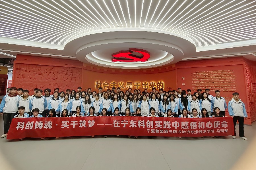 在宁东科创中心展厅,学生们沿着“宁东能源化工基地转型发展之路”展板,系统了解从传统煤炭产业到绿色能源、高端化工产业的升级历程,近距离感受科技创新的魅力。思政教师组织学生围绕“‘黑色能源’如何变身‘绿色材料’”“青年科研人员的坚守与担当”等话题展开讨论,引导学生将专业学习与国家战略需求、生态文明建设相结合,在思维碰撞中深化对“科技是第一生产力”“人才是第一资源”的理解。