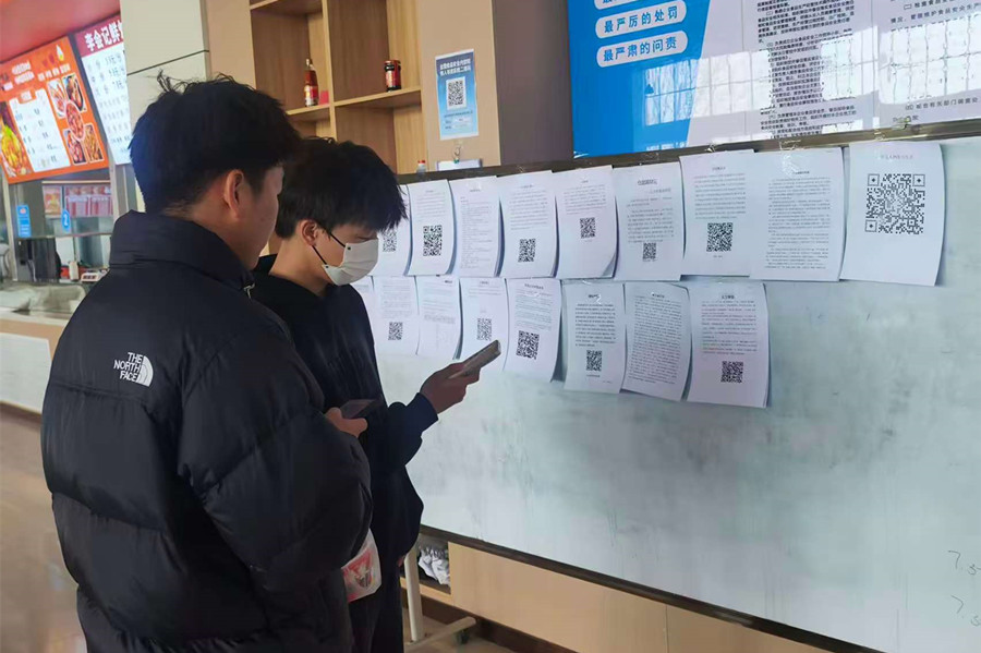 展览现场,大学生防诈骗、成语小故事、胖猫宁夏游等主题的短视频滚动播放,细腻的图像处理、流畅的镜头语言与鲜明的主题表达,赢得师生一致好评。同学们现场交流创作心得、分享技术技巧,氛围热烈浓厚。