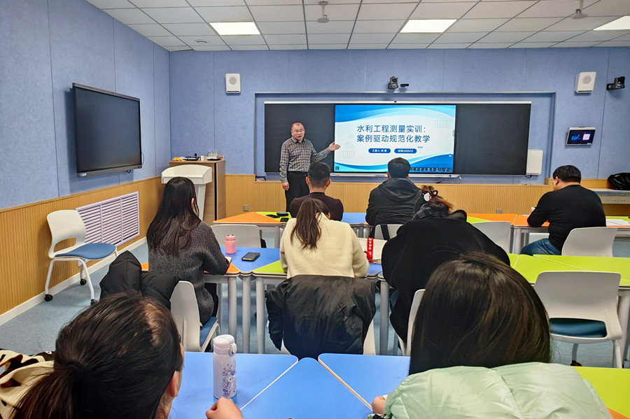 培训由水利工程系梁勇老师和风景园林系陈伟老师担任主讲。两位老师紧扣实训教学核心环节与关键技能,结合学院实训教学实际展开系统讲解。其中,梁勇老师以“水利工程测量”实训课为实例,深入浅出地阐释实训课操作规范,并进行现场示范;陈伟老师则聚焦实训教学设计与组织实施,详细讲授了实训项目创新设计的核心要点。培训现场互动热烈,参训教师围绕实训课对接行业未来发展需求等关键问题,与授课教师展开深入交流探讨,凝聚教学共识。