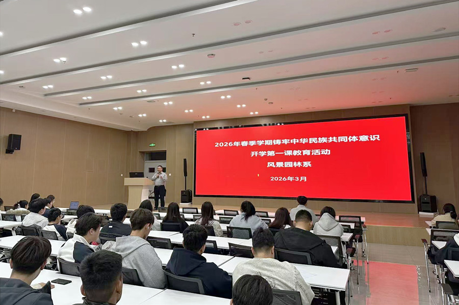3月10日,风景园林系开展2026年春季学期“开学第一课”活动,系党支部书记梁正道以铸牢中华民族共同体意识为主题,为全体师生讲授“开学第一课”。