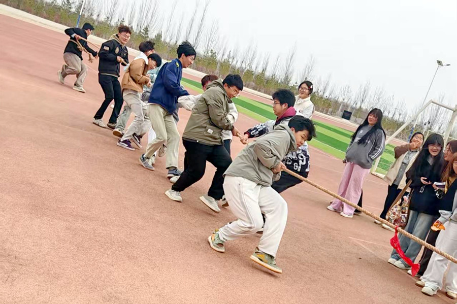 活动现场,各项目同步推进、亮点纷呈。篮球场上,学子们精神抖擞、默契配合,精准传球、果断投篮、巧妙防守,每一个动作都展现着青春的活力与拼搏的姿态;跳大绳场地内,彩绳翻飞间,同学们步伐统一、配合默契,欢声笑语中凝聚起团队协作的强大力量;拔河比赛中,参赛队员紧握长绳、重心下沉,口号铿锵、奋力拼搏,充分展现了学子们坚韧不拔、团结奋进的精神风貌;踢毽子与排球赛场,同学们踊跃参与、尽情舒展,在轻松愉悦的氛围中感受运动魅力,收获健康与快乐。