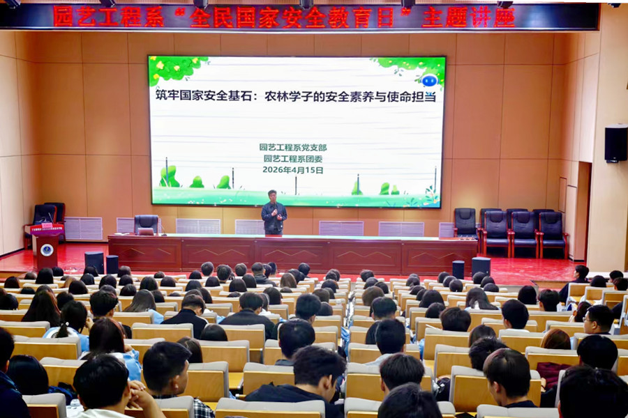 4月15日,园艺工程系在图书馆报告厅开展了“筑牢国家安全基石:农林学子的安全素养与使命担当”主题讲座,由系党支部书记杨从弟担任主讲,系部三百余名学生代表参加。