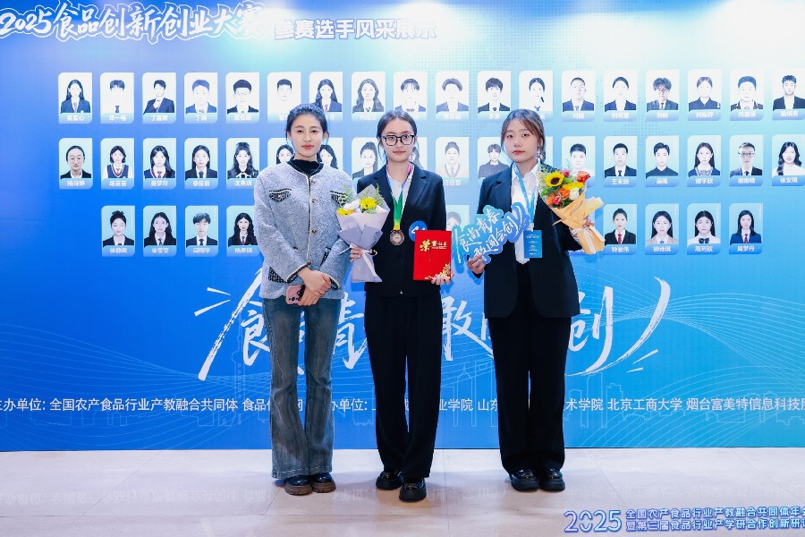 11月16日,2025 食品创新创业大赛决赛在上海圆满落幕。由我院 2024 级酿酒技术(葡萄酒方向)2班刘姝妤、2024级食品检验检测技术 1 班杜浩楠、撒银银、李晶晶同学组成的参赛团队,凭借扎实的专业技能从众多参赛队伍中脱颖而出,成功斩获铜奖,充分彰显了学院 “立足产业、育训结合” 的育人成效。