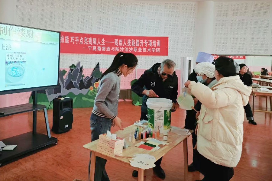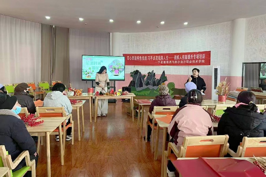 为提升残疾人职业技能水平、拓宽创业就业路径,助力残疾人更好融入社会、实现自我价值,12月23日至26日,学院受永宁县残疾人联合会委托,在永宁县残疾人综合服务中心成功举办四场残疾人技能提升专项培训。培训依托学院专业特色与资源优势,精心制定技能培训课程,以插花艺术、漆扇制作、微景观制作与电商直播带货四大核心模块,精准服务残疾人多元化技能提升与创业就业需求。